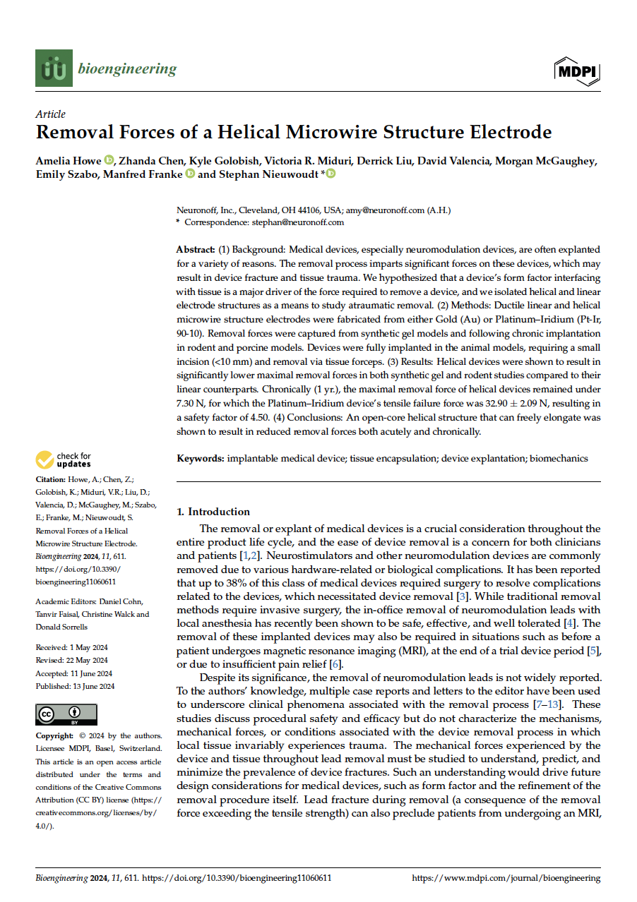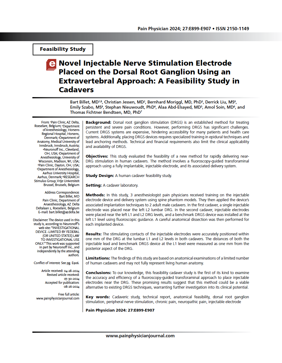 Explore our peer-reviewed research demonstrating the capabilities and applications of Neuronoff's Injectrode technology across multiple therapeutic areas. These publications showcase advances in minimally invasive neuromodulation, from the foundational technology development to computational modeling, preclinical studies, and targeted clinical applications.